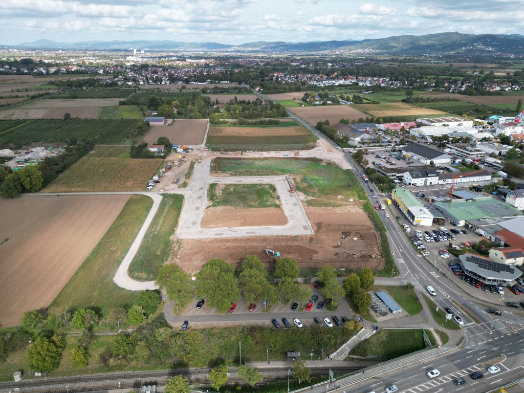 Besondere Herausforderungen lagen in der umfangreichen Abstimmung mit dem Nachbarschaftsverband sowie den Anforderungen an das HLZ-Grundstück. Auch die bauliche Erschließung des Gebiets war mit diversen Herausforderungen verbunden. Hier sind insbesondere die dauerhaft zu unterhaltende Zufahrt zum Gelände der PreZero sowie der angrenzenden Aussiedlerhöfe zu nennen. Ebenso der Neubau und die Verdämmung des bestehenden Mischwasserkanals DN 1400 zum Hebewerk, der einer der wichtigsten Abwassersammler der Gemeinde ist und vor allem der Bau des Kreisverkehrs unter Aufrechterhaltung der Anfahrbarkeit des östlich angrenzenden Gewerbegebiets. Zudem wurden im Zuge der Bauarbeiten auch umfangreiche archäologische Grabungsarbeiten durchgeführt und ein ausgedehntes eisenzeitliches Siedlungsareal gefunden und dokumentiert.