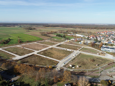 Das Baugebiet liegt am westlichen Ortsrand des Stadtteils Spöck. Auf der Basis eines städtebaulichen Wettbewerbs hat die Stadt im Herbst 2015 die ESB AG als Erschließungsträger ausgewählt. Die ESB AG war umfassend mit der Projektsteuerung für Bebauungsplan, Vorabzerlegung und Ausscheiden aus einem laufenden Flurbereinigungsverfahren, Bodenordnung und Erschließung beauftragt. Die Erschließung erfolgte im eigenen Namen und auf eigene Rechnung der ESB AG. Im Gebiet wurden ca. 101 neue Baugrundstücke erschlossen, für Geschosswohnungsbau, Doppelhäuser und Einzelhäuser. Im Zentrum des Gebiets wird ein Grünzug mit Aufenthaltsqualität umgesetzt.